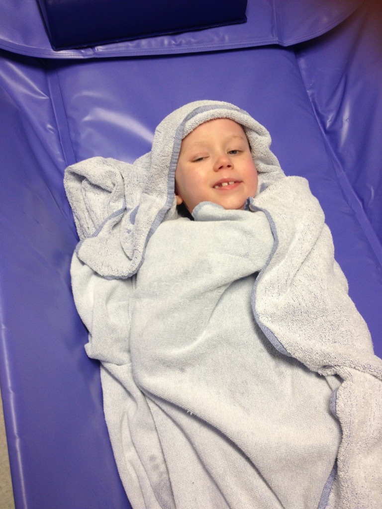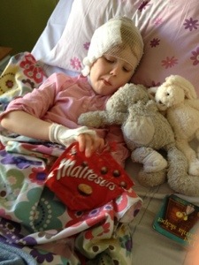 På eftermiddagen fick hon huvudvärk som inte ville ge med sig. Hon hade straxt under 39 graders feber också, så det blev lite mycket för henne. Mesta delen av eftermiddagen/kvällen har hon legat med en schal över ögonen och mammas eller pappas hand på pannan. Runt 20.00 gav det med sig till slut (huvudvärken i alla fall) och hon somnande. Vi tror inte sömnen under dagen har varit särskilt avslappnande och hoppas hon får sova i natt.
