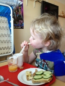 Söndagen började med frukost, utan O’boy.. Vi trodde hon skulle be om det efter att ha druckit det på sjukhuset nu en månad men inte då, hemma finns andra regler 🙂