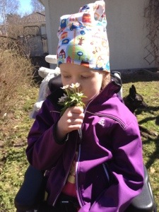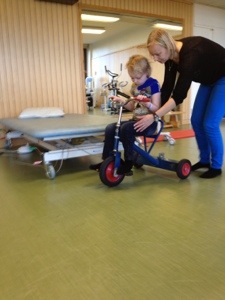 Väl hemma ville Meya köra båtarna i båtbanan som Max plockat fram. Tänk vad våra barn älskar vatten! Hon satt där en lång stund och plaskade och körde båt, tills grannbarnen kom och hälsade på. Meya försökte hänga med i leken, men tyvärr går det inte riktigt ännu. Med mammas och rullstolens hjälp kommer man rätt långt ändå.