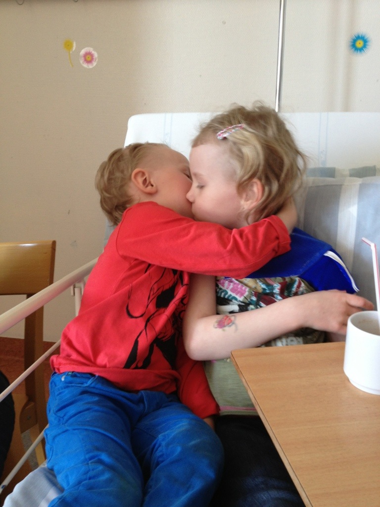 Meya hittade en liten tjejkompis på sjukhuset. Oj va de har busat, de hade samma humor och kramgo var den lilla tjejen också (vilket ju är tur eftersom Meya älskar att kramas..)
