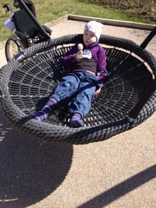 Efter krämkokning skulle hon ut i trädgårdslandet och sätta lök med mommo, och gunga lite måste man ju också göra 🙂 Till slut var hennes mammas rygg helt slut så då fick vi gå hem.