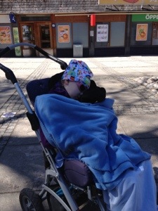 Vi fick ett infall och köpte en pizza.. Vi gick tillbaka till Ronald McD och delade på den och Meya fick en chokladboll (vilket hon tjatat om sedan 06.00) Efter det tog Meya igen sig på rummet en stund. Jag tror hon gillade att slippa sjukrummet en stund..
