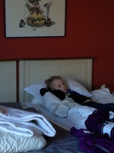 Natten var lugn, Meya vaknade till några gånger bara. En gång vaknade hon och klappade mig lite på kinden, log och somnade om..