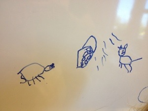 Onsdagen var en hårdträningsdag, Meya jobbade otroligt bra med Gunnar, sjukhusläraren. Hon sitter nästan en hel timme och jobbar hårt! Hon ritade en mus, katt och ett hus själv!