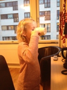 Meyas farmor kom upp och hälsade på oss, vi åkte tillsammans med henne till vårt hotell, Meya tog med sig varm choklad till rummet! Det är nog det bästa med att bo på hotell tror jag 🙂